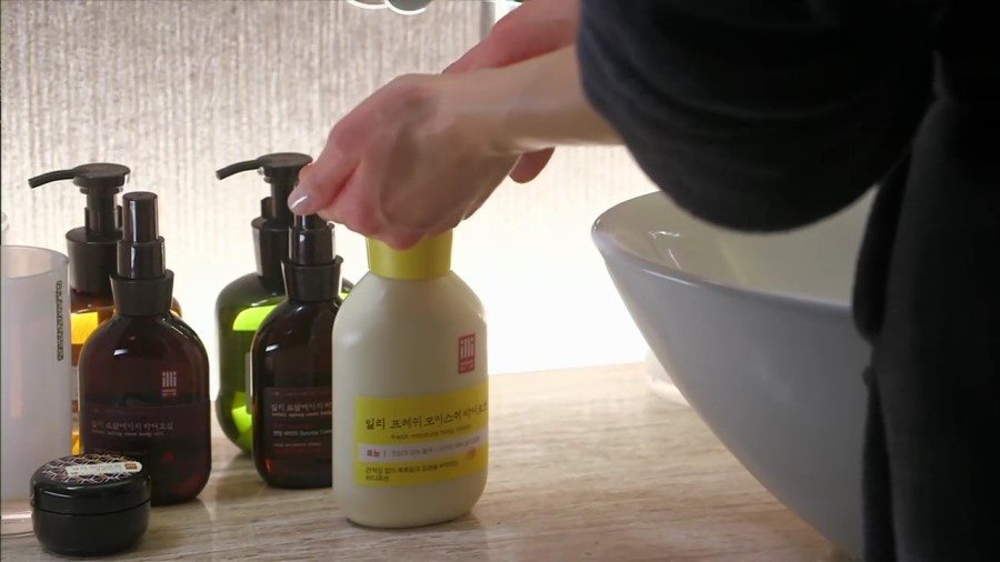 그중 일리 프레쉬 모이스춰 바디로션을 바르는 모습이 나왔어요~