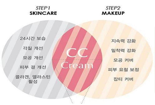 비비크림은 메이크업을 함축한 크림이라고 하면, cc크림은 스킨케어와 메이크업을 함축한 크림이라고 생각하시면 될듯해요!