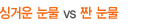 평상시 눈물 눈이 촉촉하게 젖어 있는 듯 보이는가? 이것이 평상시 눈물이다. 공기나 먼지 등이 눈에 바로 닿지 않게 하고, 달라붙는 이물질이 있으면 씻어낸다. 신체 중 직접 씻지 않아도 되는 유일한 부위가 눈인 것도 ‘평상시 눈물’ 덕분.