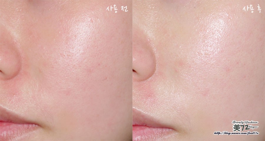 그렇게 해서 얼굴에 바르기 전과 후의 모습입니다.