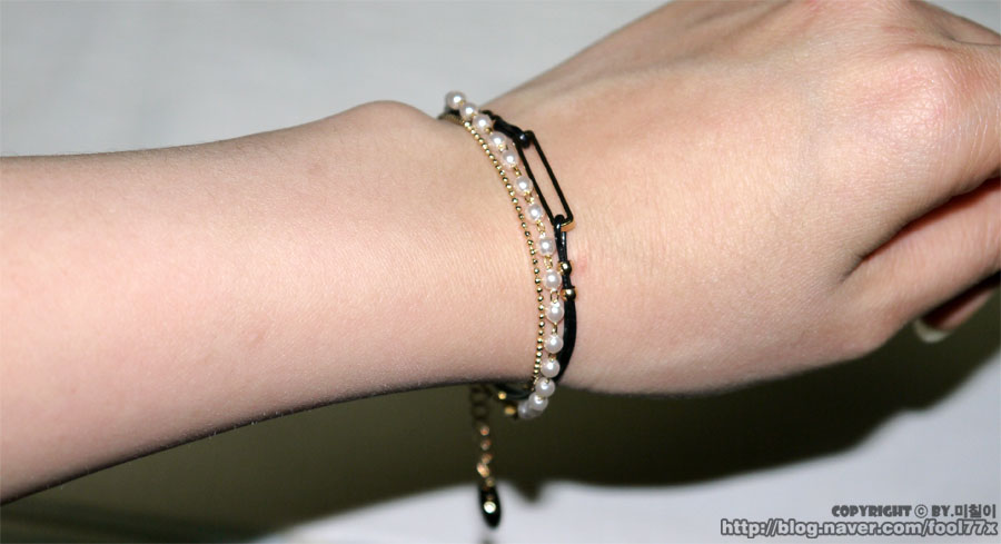 저거 진주 팔찌는 따로 착용해도 되는데 같이 착용하니까 훨씬 이쁘네요!