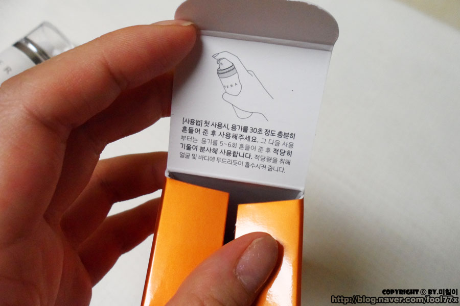 그다음부터는 5~6회 정도 흔들어서 적당히 기울여 분사해 사용하라고 하네요~!