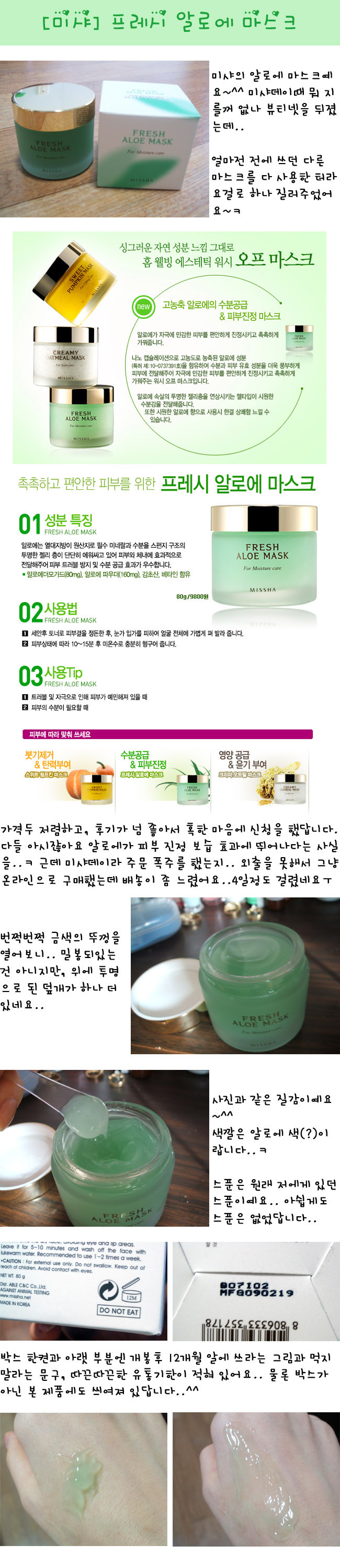 <span class="pcol1 itemSubjectBoldfont">[미샤] 프레시 알로에 마스크 </span> 연예/화보 조회 0 원본보기 0 인기도 점수 0 0 요약 프레시 알로에 마스크 브랜드 미샤 80g, 트러블완화, 피부진정, 수분공급 평점 (제품 설명 출처: http://www.beautynet.co.kr/ ) 원본 페이지로 이동 추천 콘텐츠 원숭이에게 화폐 개념을 가르쳐 보았다 0 사유리가 보는 한글모양 jpg 0 여성 장청소 식품よ㎞ 추천 0 역대 MISS MAXIM 우승자 0 조선일보에게 강등 당한 미국과 승격된 일본 0 A컵 ㅊㅈ의 시야.jpg 0 관련 이미지 아프리카 BJㅅㄱ 32444 검스검스 모음ㅎㅎㅎ 13493 코지마 하루나 11824 벗을람벗고 15075 검스/발 성애자 12082 존나예쁘고섹시한 피팅모델 12449 사노 히나코 6733 사사키 마이 15200