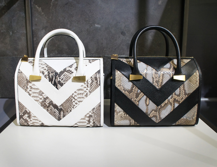 구조적인 형태감과 독특한 고급 소재의 사용으로 대조적인 컬러 매칭이 특징 이라고 해요