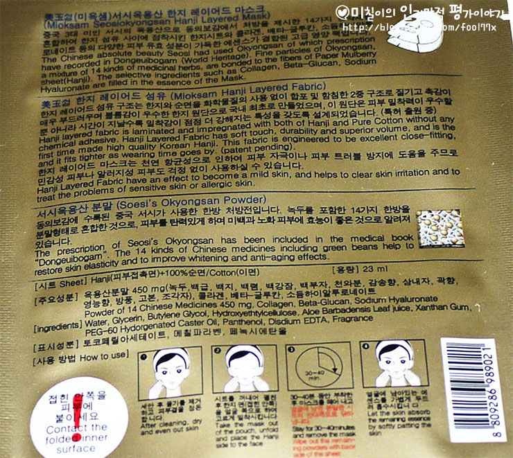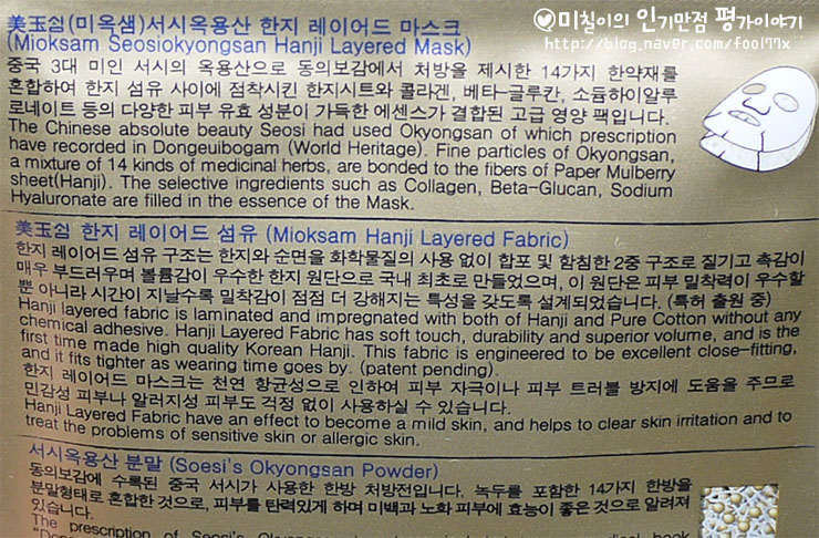 마스크팩추천 >미옥샘 : 서시옥용산 한지 레이어드 마스크팩