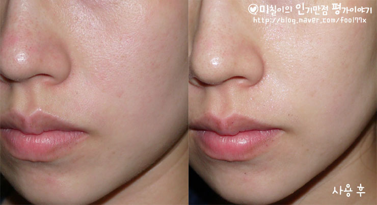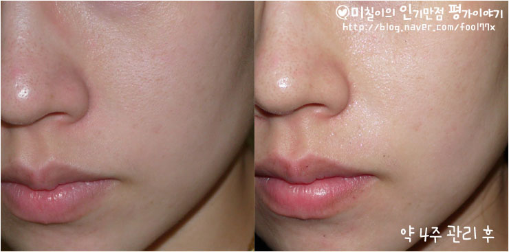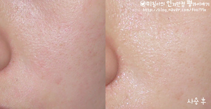 자세히 들여다본 피부 전 후 상태... 관리 후 사진은 사용하고 나서 찍은 사진이라 그런지 좀 반짝 거리긴 합니다만..ㅋㅋ