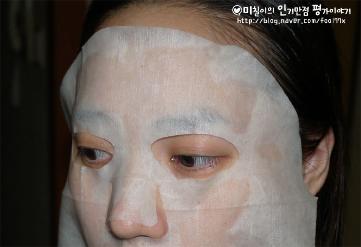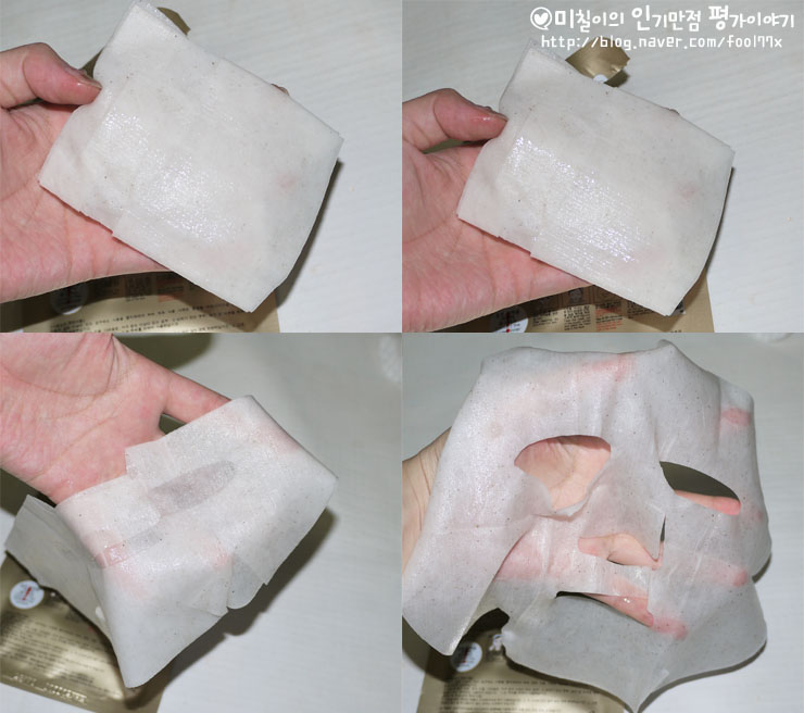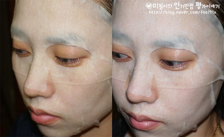 전체적으로 밀착력도 좋은편이었구요.. 다른 제품들은 밀착력이 좋으면서 얇은 시트를 사용하는데.. 한지 마스크팩이라 그런지 미옥샘 마스크팩은 많이 얇지 않으면서 적당한 두께감과 자극없이 사용가능한 밀착력을 지니고 있는 제품이었어요~