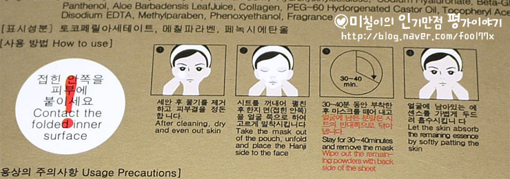 반드시 접힌 부분을 얼굴에 부착하셔야 합니다. 그부분이 한지로 되어 있거든요!ㅋ