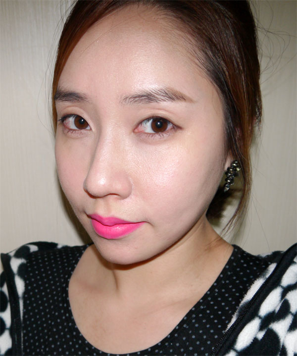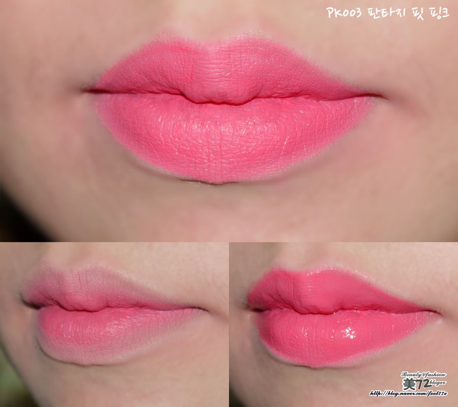 왼쪽은 PK003 판타지 핏 핑크 컬러 바른 모습이예요~