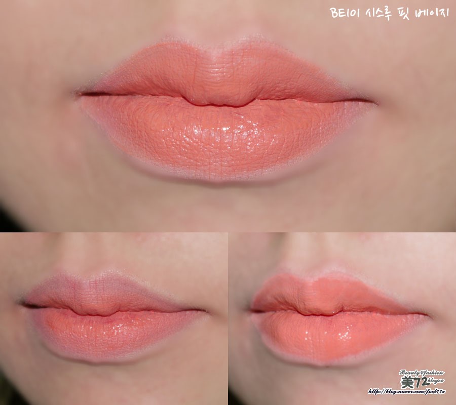 이건 베이지 컬러로 완전히 입술컬러를 덮는 느낌이 아닌 말그대로 시스루 느낌을 주는 컬러에요~