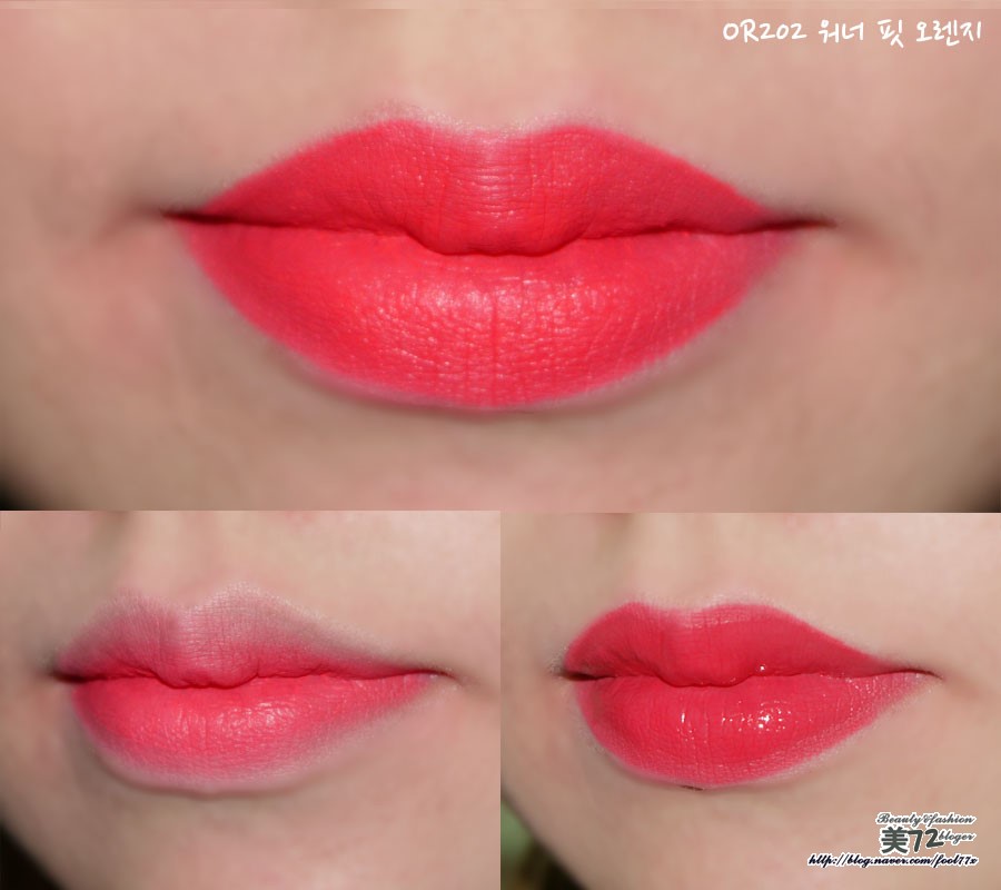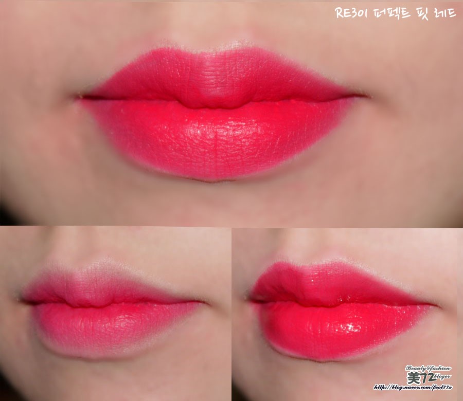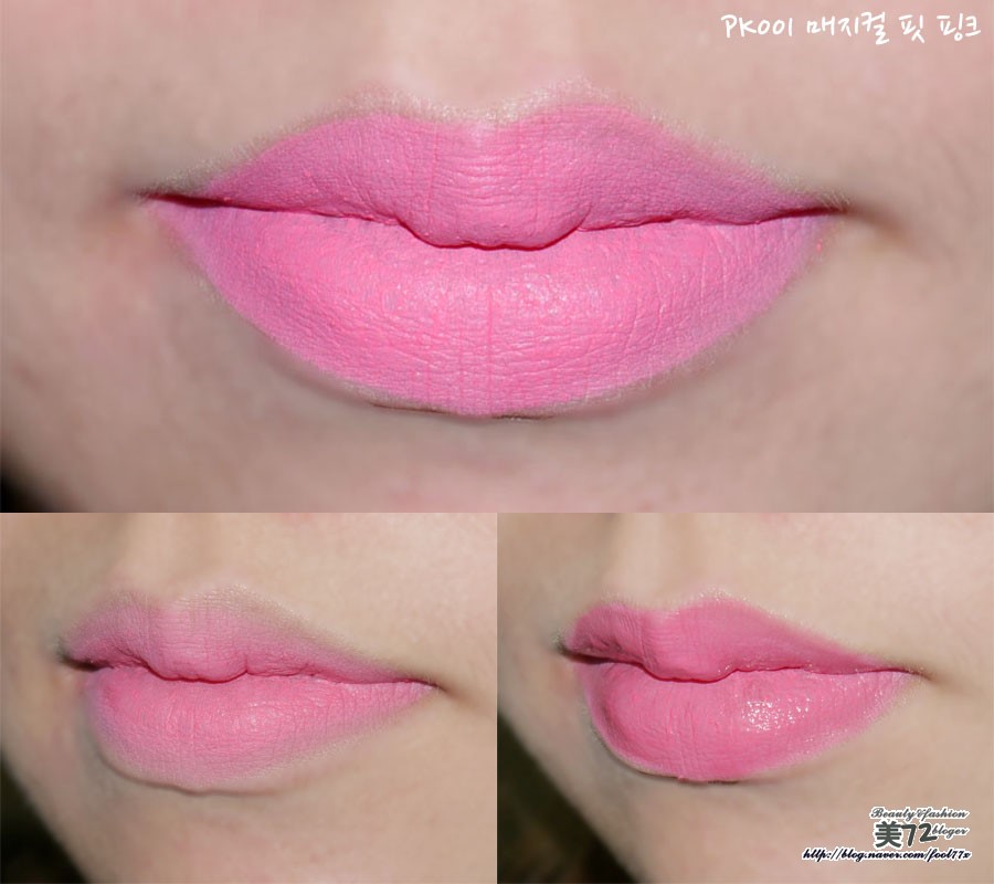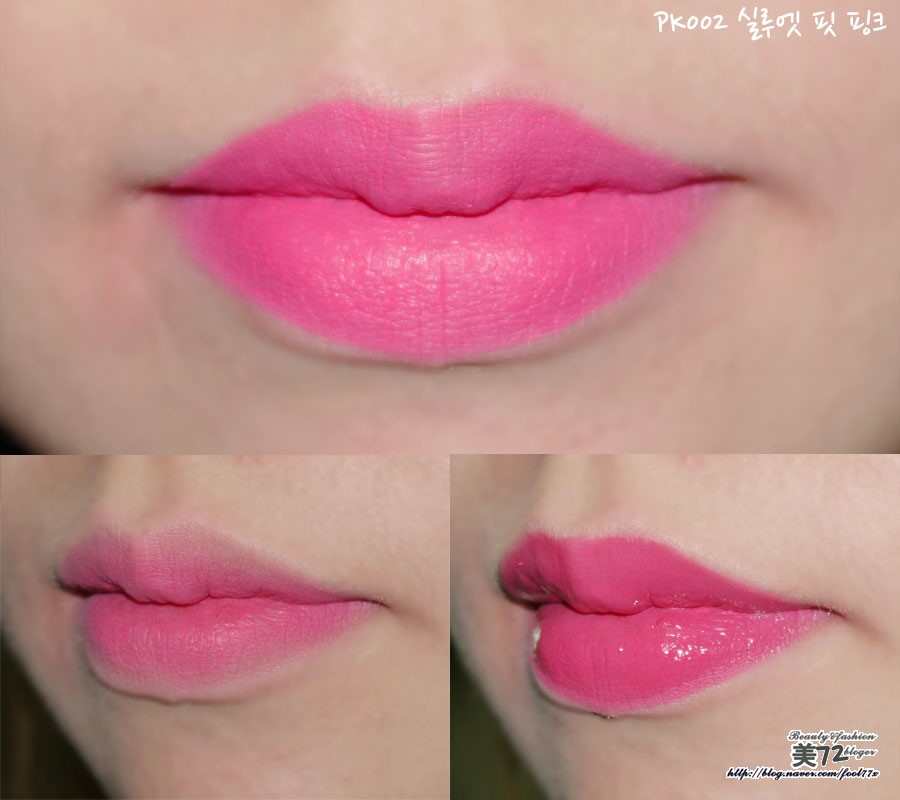 그리고 오른쪽은 PK002 실루엣 핏 핑크 바른 모습!!ㅋ