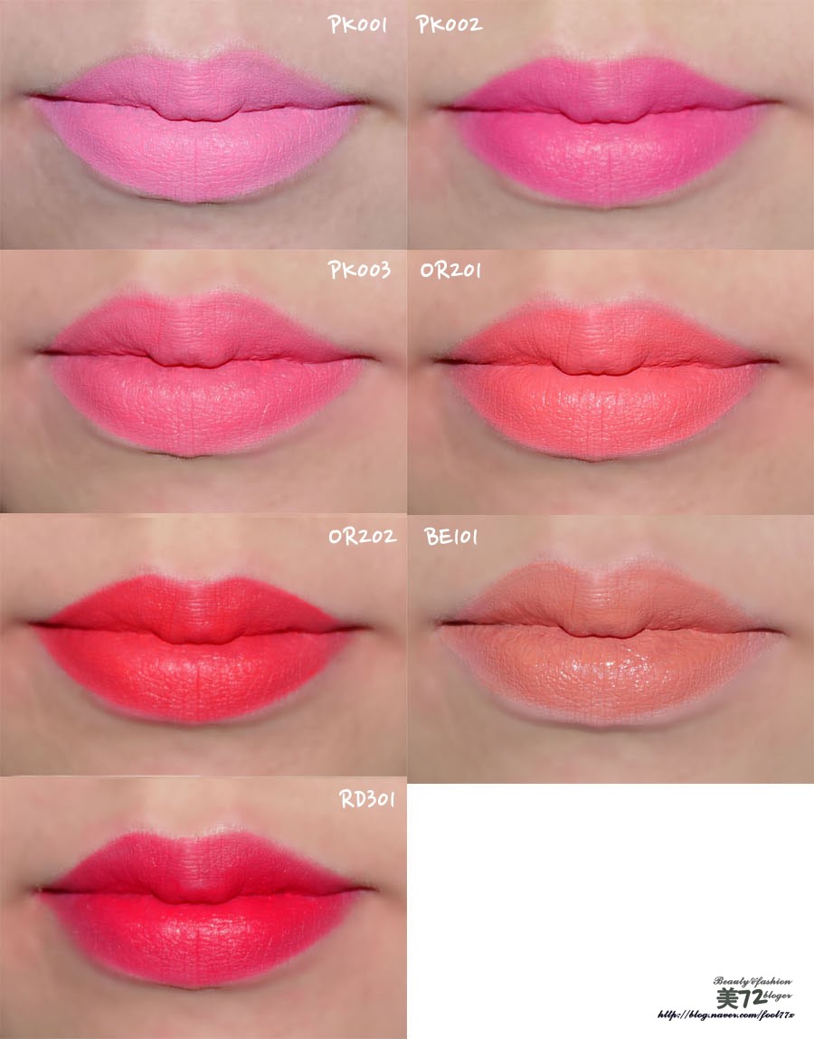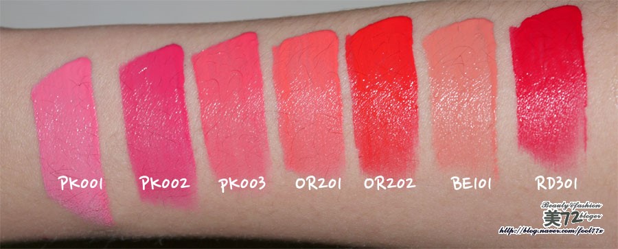 PK001, PK002, PK003, OR201, OR202, BE101, RD301 이렇게 발색했구요~