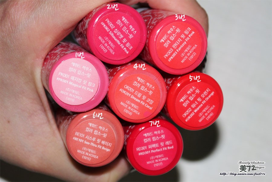에뛰드 컬러 립스핏 전 컬러 발색 모습이예요!