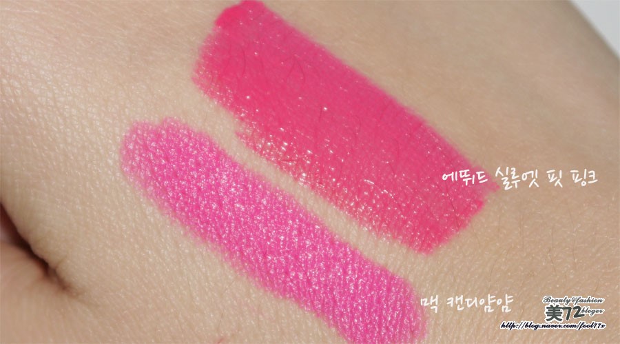 캔디얌얌이 네온핑크라 좀 더 튀는감이 있고,