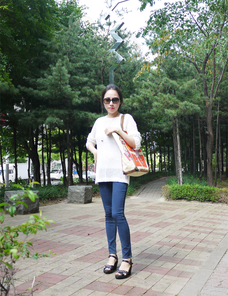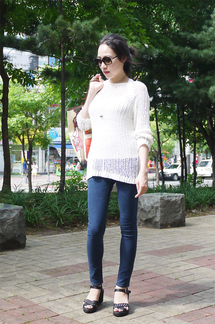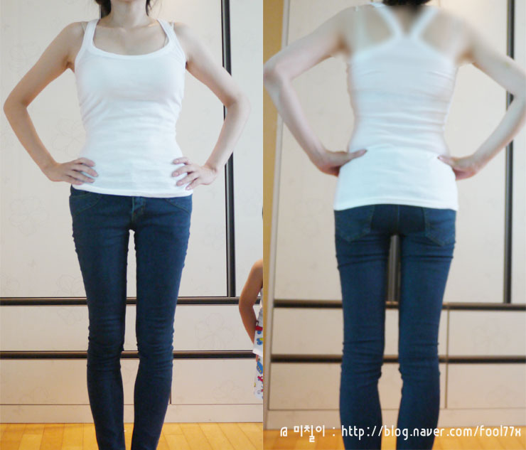보시는것처럼 화이트색상의 나시와.. 블루 스키니진이랍니다^^