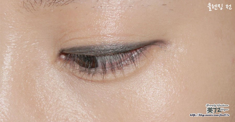 눈가 베이스 메이크업은 물론 아이라이너까지 모두 지워진 모습!