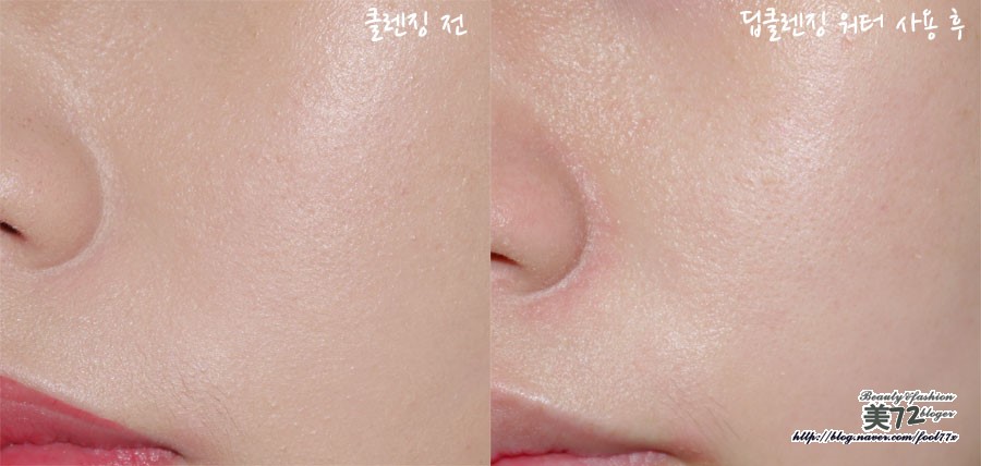 그리고 베리떼 딥클렌징 워터로 클렌징 후의 모습입니다.