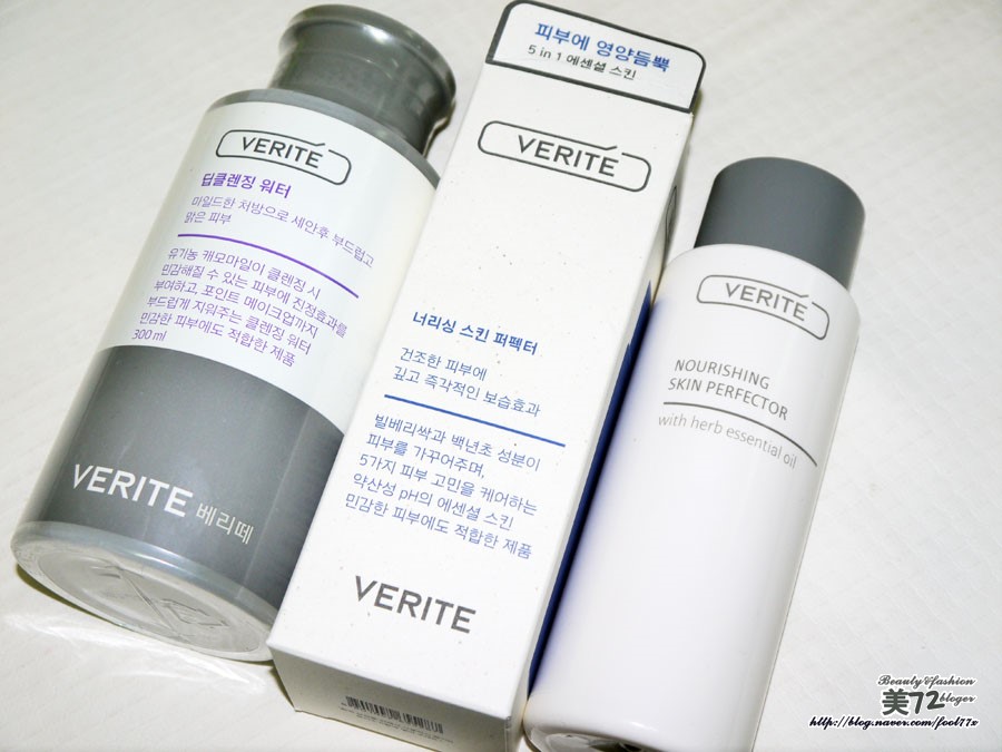 베리떼 딥클렌징 워터와 너리싱 스킨 퍼펙터 제품이예요^^