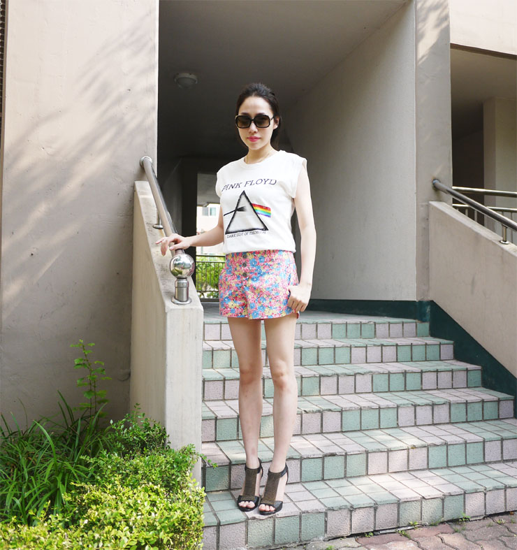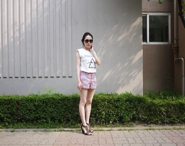 짠!! 꽃무늬 바지와 심플한 티셔츠가 보여요!ㅋ