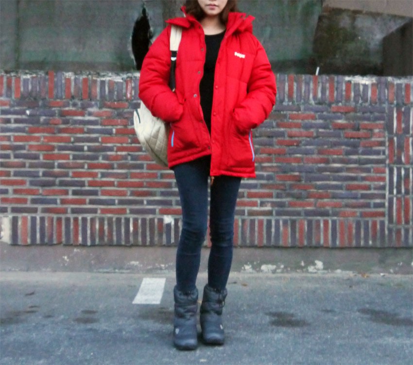 레드 컬러의 패딩과 청바지에 노스페이스 패딩부츠와 함께 해보았어요~^^