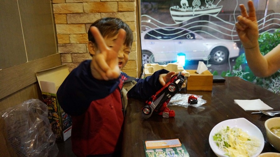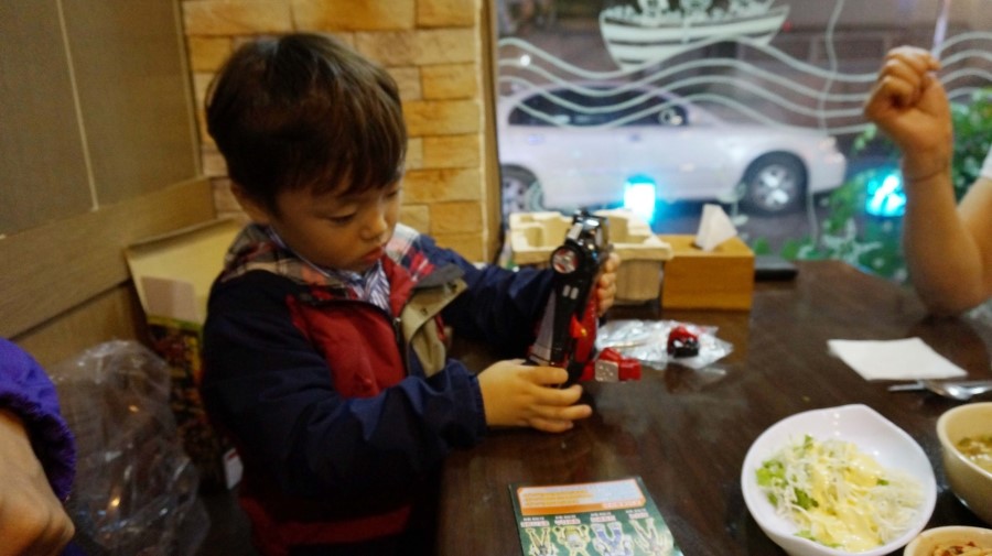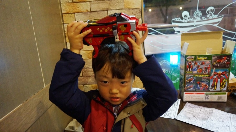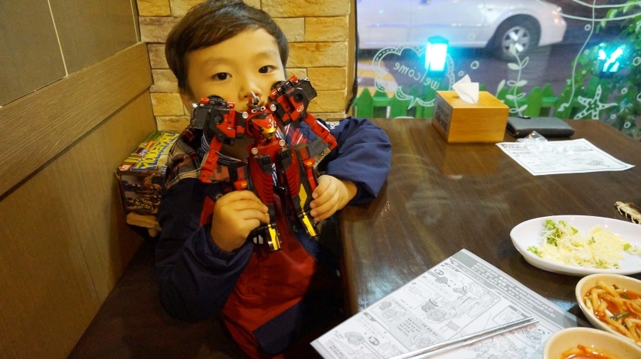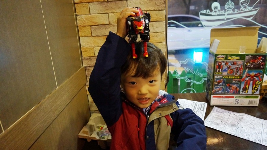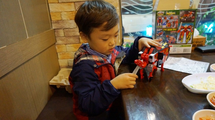 장난감 갖고 노느라... 먹지도 않고....로봇삼매경...
