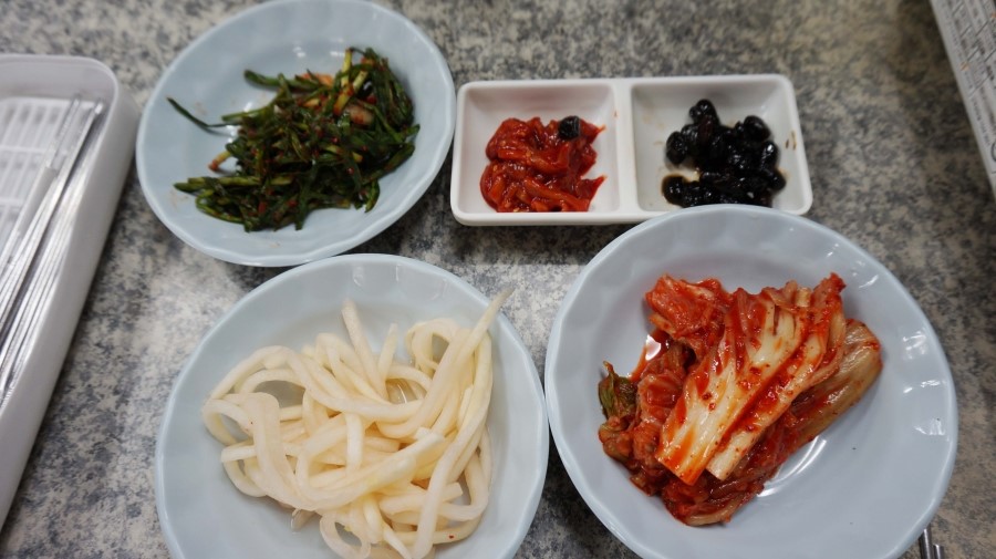 밑반찬들입니다! ㅎㅎㅎㅎ 원래 부추김치가 아니라 파김치였는데..ㅠ_ㅠ