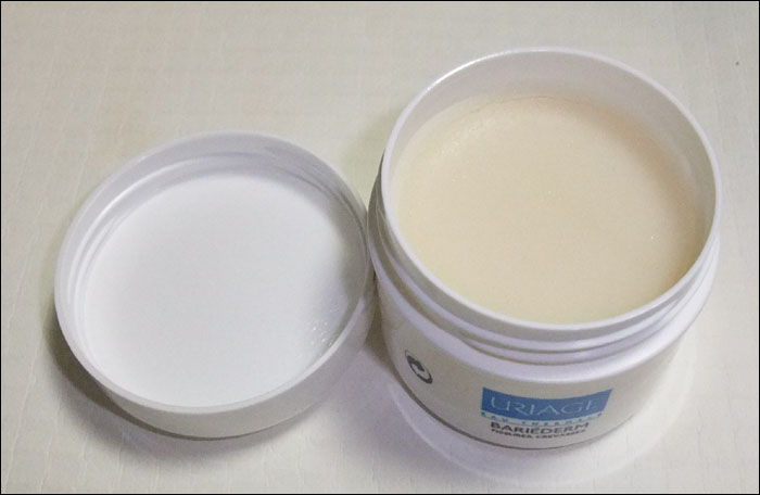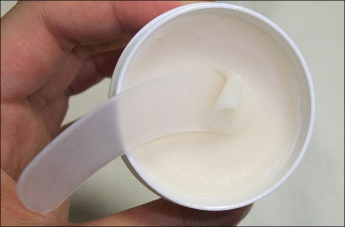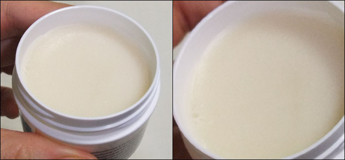 제품 뚜껑을 열어보았습니다~ 약간 노란 아이보리빛을 띄는 제형으로 이루어져 있어요~