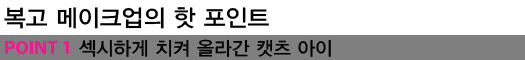 지금 트렌드의 중심은 복고입니다. 모든 여자 연예인들의 눈매는 하나같이 60년대를 풍미했던 소피아 로렌처럼 눈꼬리가 살짝 치켜 올라간 캣츠 아이를 연상시킵니다. 그 중에서도 원더걸스는 복고 트렌드의 결정판이죠. 둥글게 말려 들어간 초코송이 헤어, 딸기 우윳빛 립스틱 그리고 인형처럼 풍성한 속눈썹까지. “대체 유빈이 바른 저 립스틱은 뭔가요?”라는 문의가 하루에도 수백 건씩 빗발치고 있답니다. 물론, 당신도 유행의 중심에 설 수 있습니다. 근데 이왕 할 거면 제대로 하는 게 어때요, 우리.