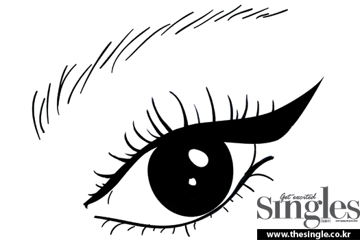 1 눈매를 완벽하게 강조하기 위해서는 아이라인을 따라 진하고 두껍게 그릴 것. 눈앞머리를 두껍고 동그랗게 그리면 눈이 더 크고 선명해 보인다.