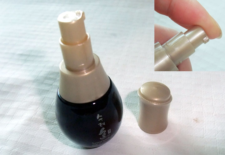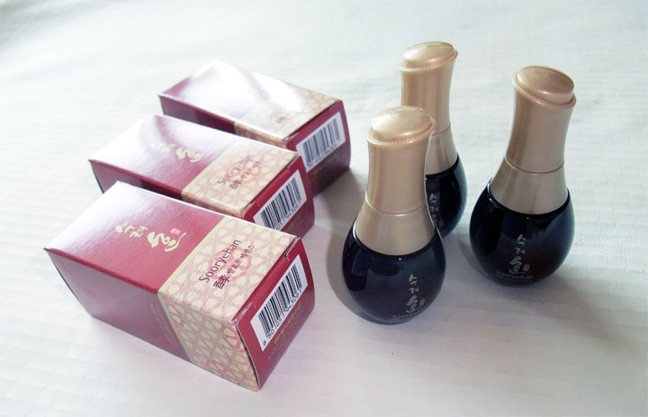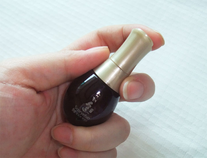한방라인에 맞는 약간 어두운 노란빛을 띄고 있구요~ 발랐을때엔 살짝의 쫀득임이 있는 고농축영양감이 풍부한 에센스였어요...