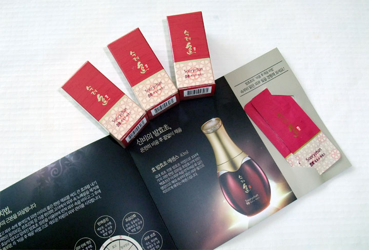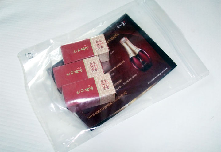 한방라인에 맞는 와인빛이 도는 제품들.. 제품 설명 팜플렛과 함께 샘플 필름지도 3장이 왔더라구요~