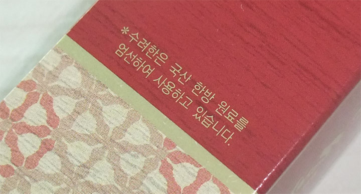 박스 사이드 부분을 보니 요렇게 수려한은 국산 한방 원료를 엄선하여 사용되고 있다고 하더라구요~!