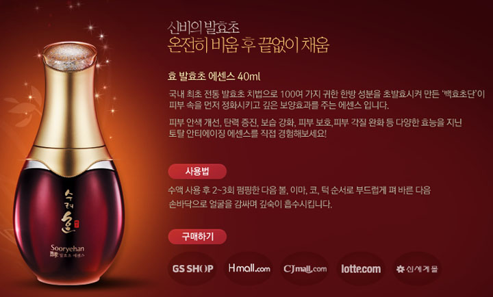 [수려한] 비.후.채 / 효 발효초 에센스 40ml / 95,000원 좀 고가이긴 하나, 인터넷 검색해 보시면 좀 더 저렴한 가격으로 구매 가능합니다.