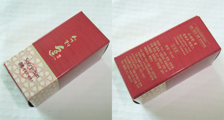제품 박스 형태입니다. 수려한이라는 문구가 눈에 확 들어오죠~! 와인색감의 케이스.. 뒷면에는 제품 설명이 간단히 적혀있어요..