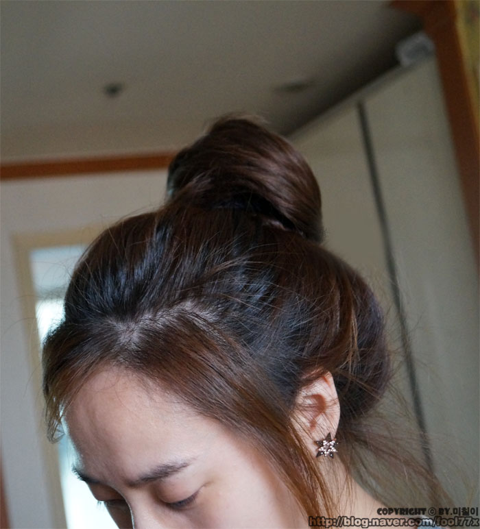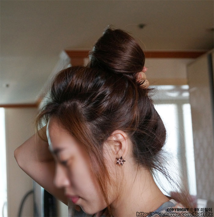 그냥 대충 머리 말아서 묶은 뒤에 사진과 같이