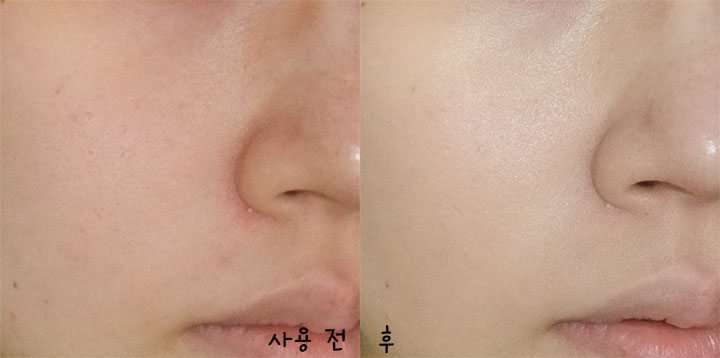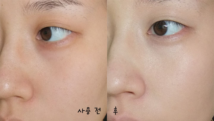 직접 얼굴에 사용해본 모습.. 제가 다크서클에 약간 노란 피부인데 피부톤을 말끔하게 정리해주었어요~ 다크서클도 많이 가려졌죠 ?ㅋ