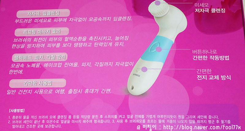 분당 300회 회전하는형식이라 그런지 문지르지 않아도 손쉽게 클렌징이 가능하여 사용하기 간편했던 제품이었습니다. |