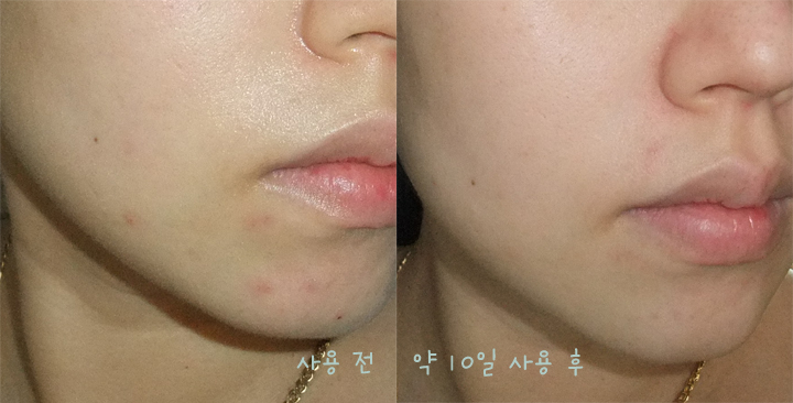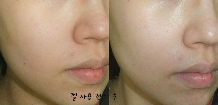 얼굴에 사용하기 전과 후의 모습입니다.. 약간의 윤기가 도는 피부...