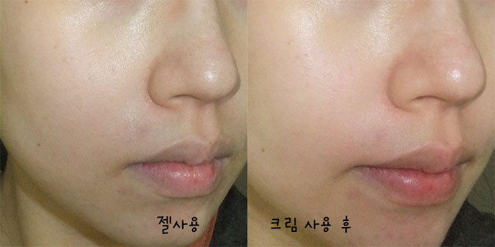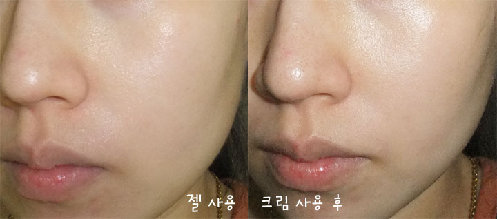 젤을 사용하고 바로 크림을 사용한 모습입니다..