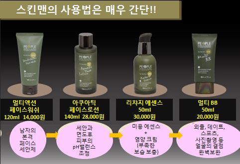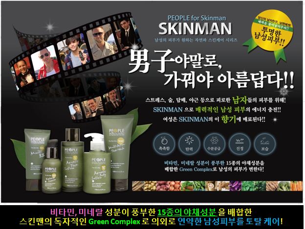 스킨맨 멀티 액턴 페이스워시, 스킨맨 리차지 에센스, 스킨맨 아쿠아틱 페이스로션, 스킨맨 멀티 비비