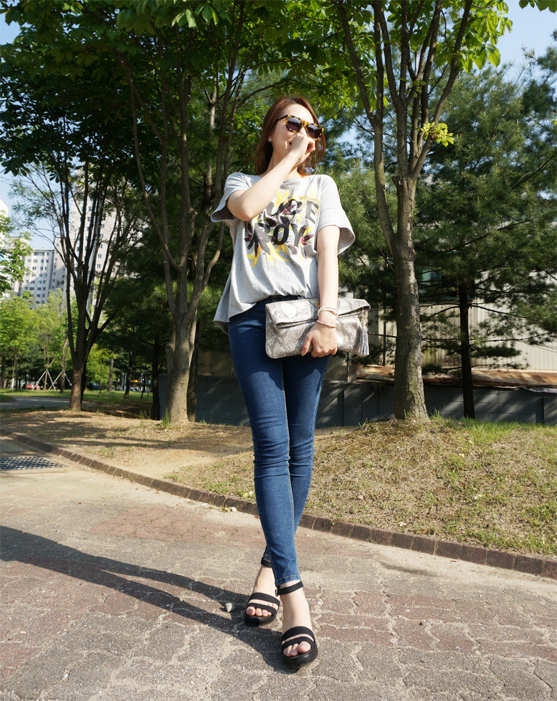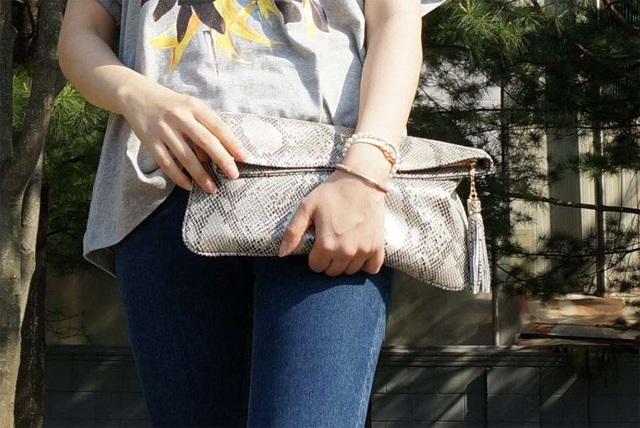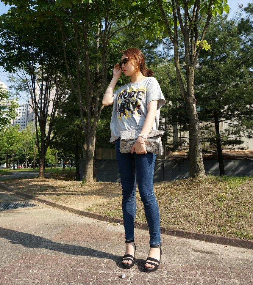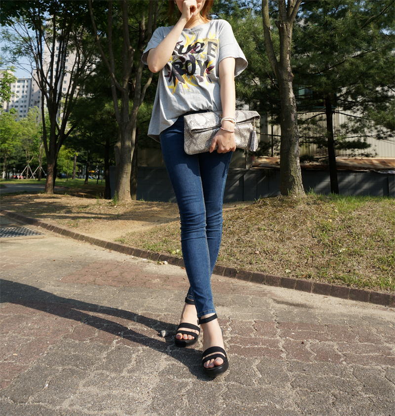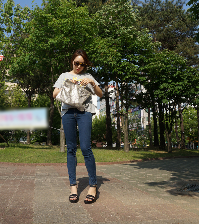 그리고 클러치와 크록스 레이웨지 블랙 컬러 매치했어요!^^