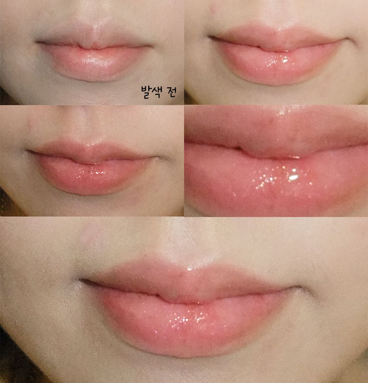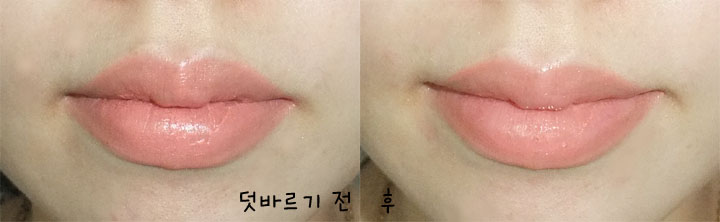 보시는 것처럼 발색이 강하지 않고 약간 있는 정도구요.. 립스틱 위에 발라주시는 것도 참 좋을것 같아요^^